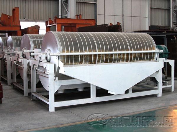 河南紅星石榴石砂磁選機磁輥表面磁感應強度可到15000Gs以上;設備使用全磁磁系,有效增加了有效分選面的面積;采用上部給礦方式,操作方便,磁力線長,增加吸附區(qū)的布料厚度。這幾個特點使設備具有極高的回收率和良好的除鐵效果。